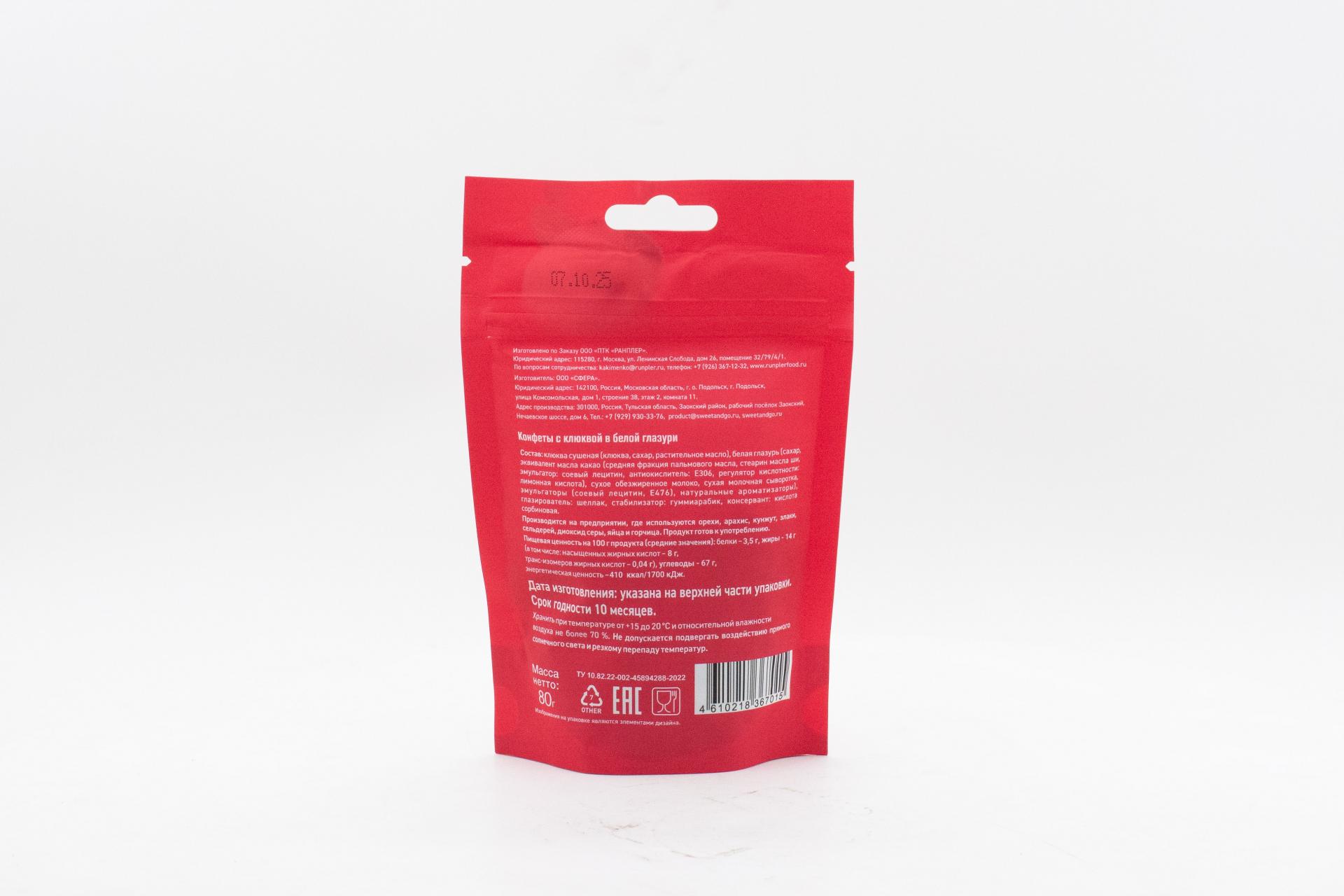 Конфеты Sweet&Go с клюквой в белой глазури (Россия) 80г0,00 руб. за штуку (в упак. 15 шт.) |