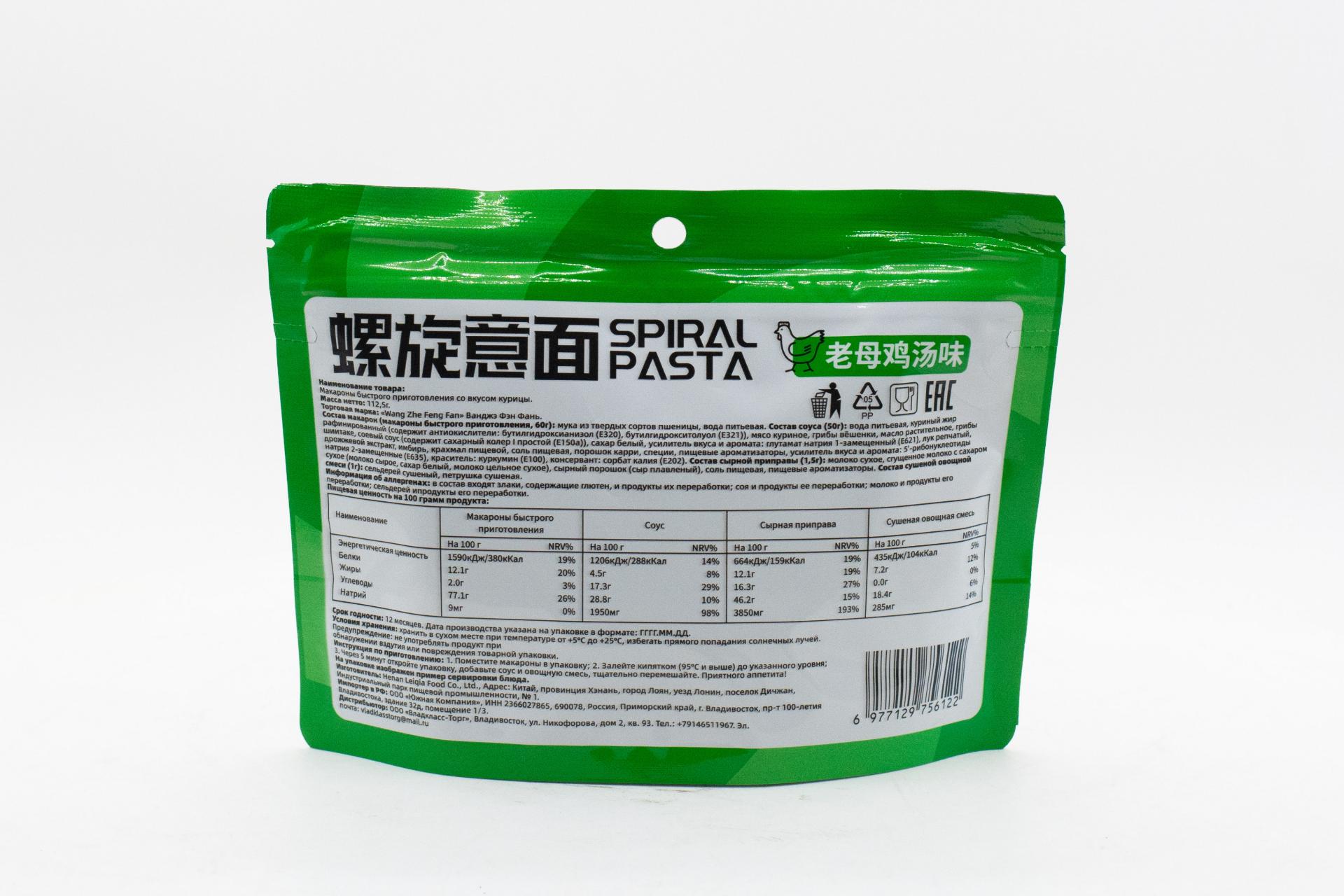 Макароны б/п Ванджэ Фэн Фань со вкусом курицы (Китай) 112,5г0,00 руб. за штуку (в упак. 50 шт.) |